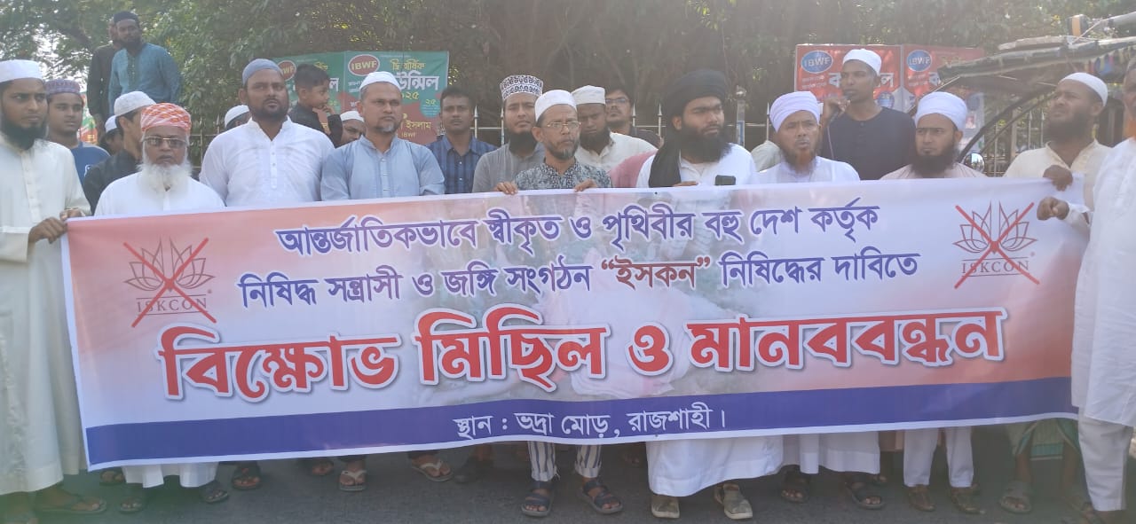 রাজশাহীতে ইসকন নিষিদ্ধের দাবিতে বিক্ষোভ সমাবেশ