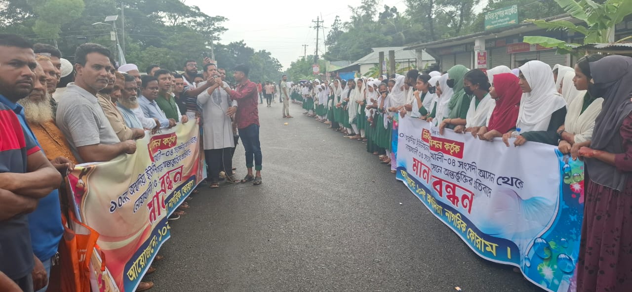 নোয়াখালী -৪ আসন থেকে দুটি ইউনিয়ন বাদ দেওয়ার প্রতিবাদে সড়ক অবরোধ করে বিক্ষোভ