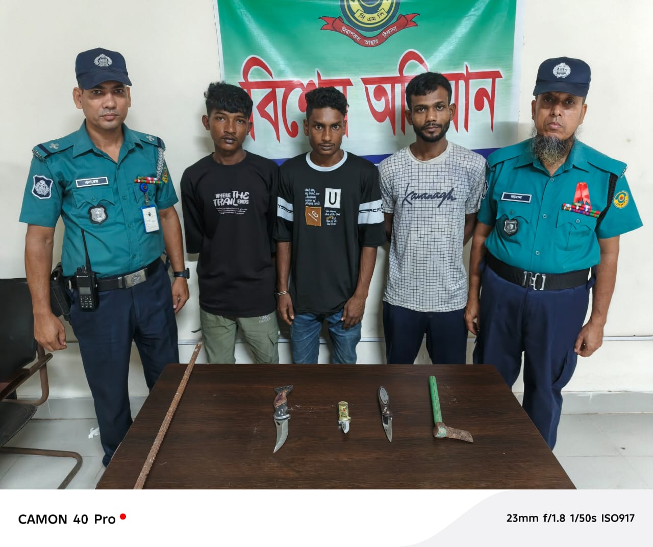 সিএমপি'র পাহাড়তলী থানা পুলিশের অভিযানে ডাকাতির প্রস্তুতিকালে ডাকাত দলের ০৩(তিন) সদস্য গ্রেফতার ও বিভিন্ন আলামত উদ্ধার